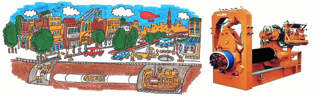推進工法の対象工事のうち、都市機能のインフラストラクチャーとして重視されている下水道管の埋設工事は、下水を自然流下させるため、推進工法による管の敷設には、その軸線精度を維持しながら複雑な地層を推進できる優れた性能の推進機が要求されます。